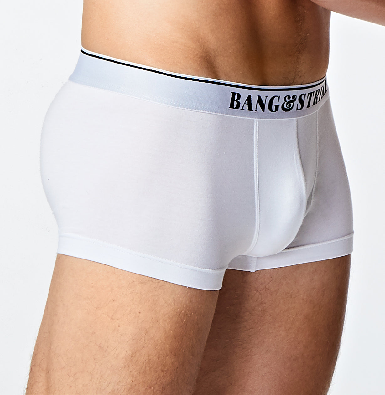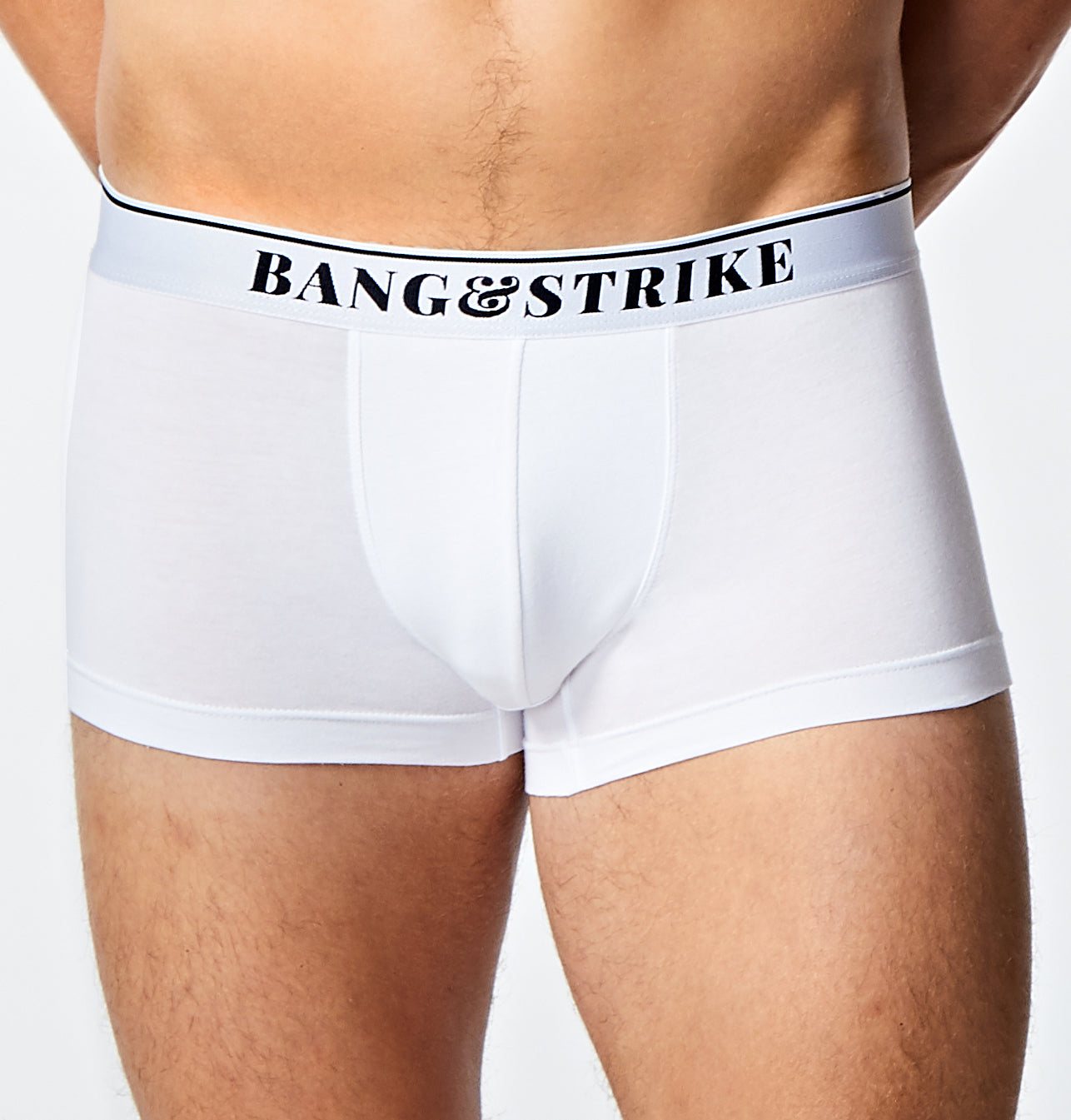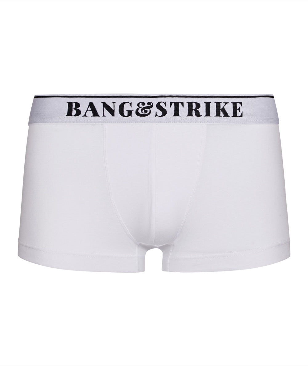 Our CORE Cotton Trunk features a 3.5cm thick waistband with contrast 'BANG&STRIKE' branding and upper edge stripe detailing.