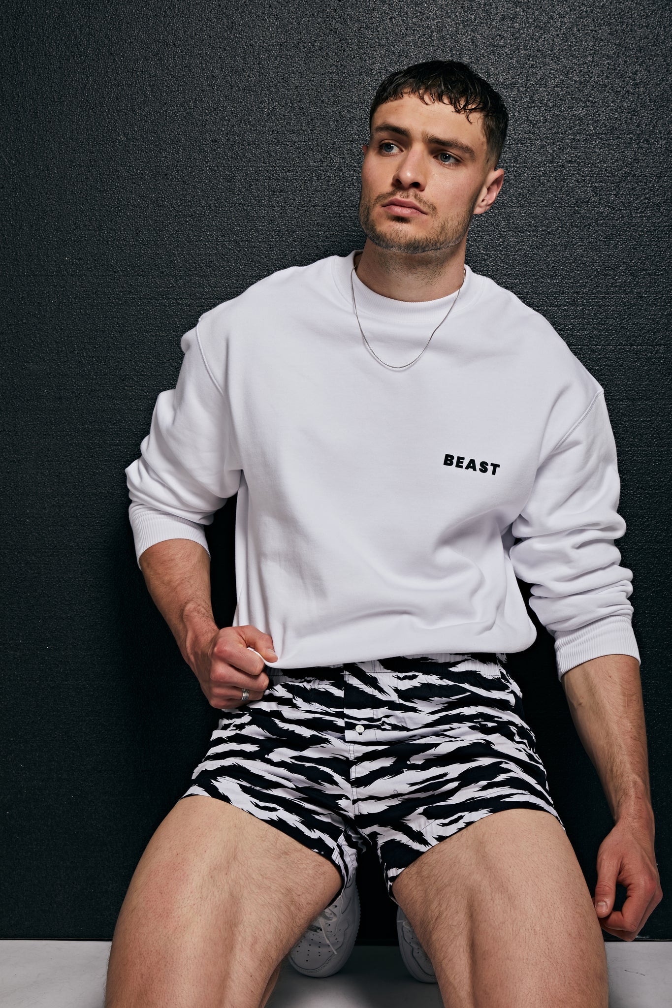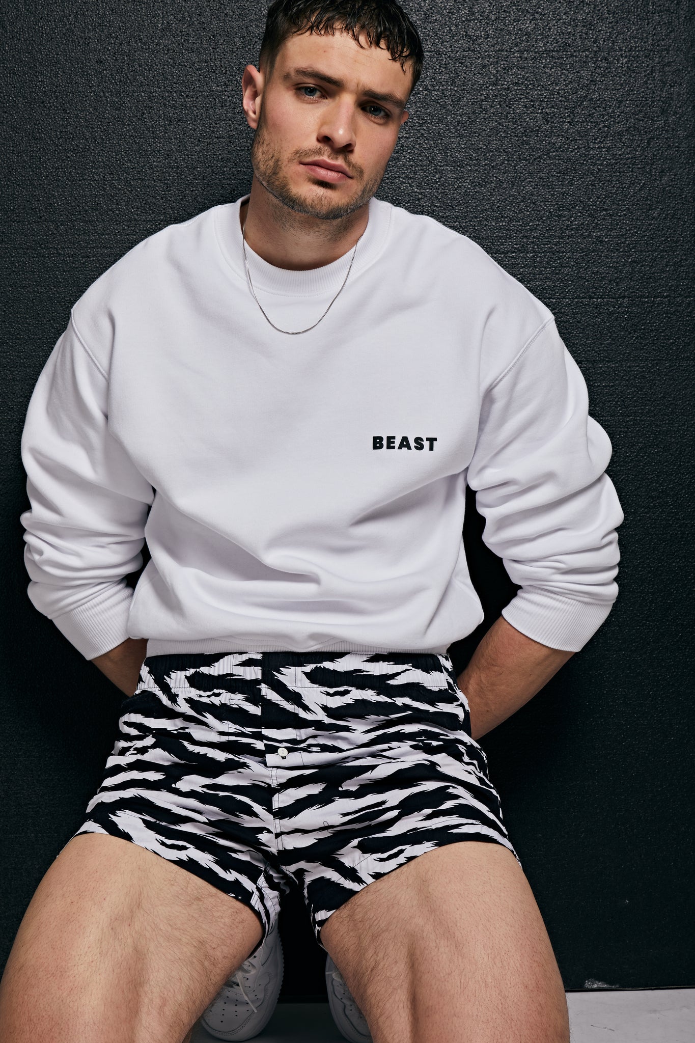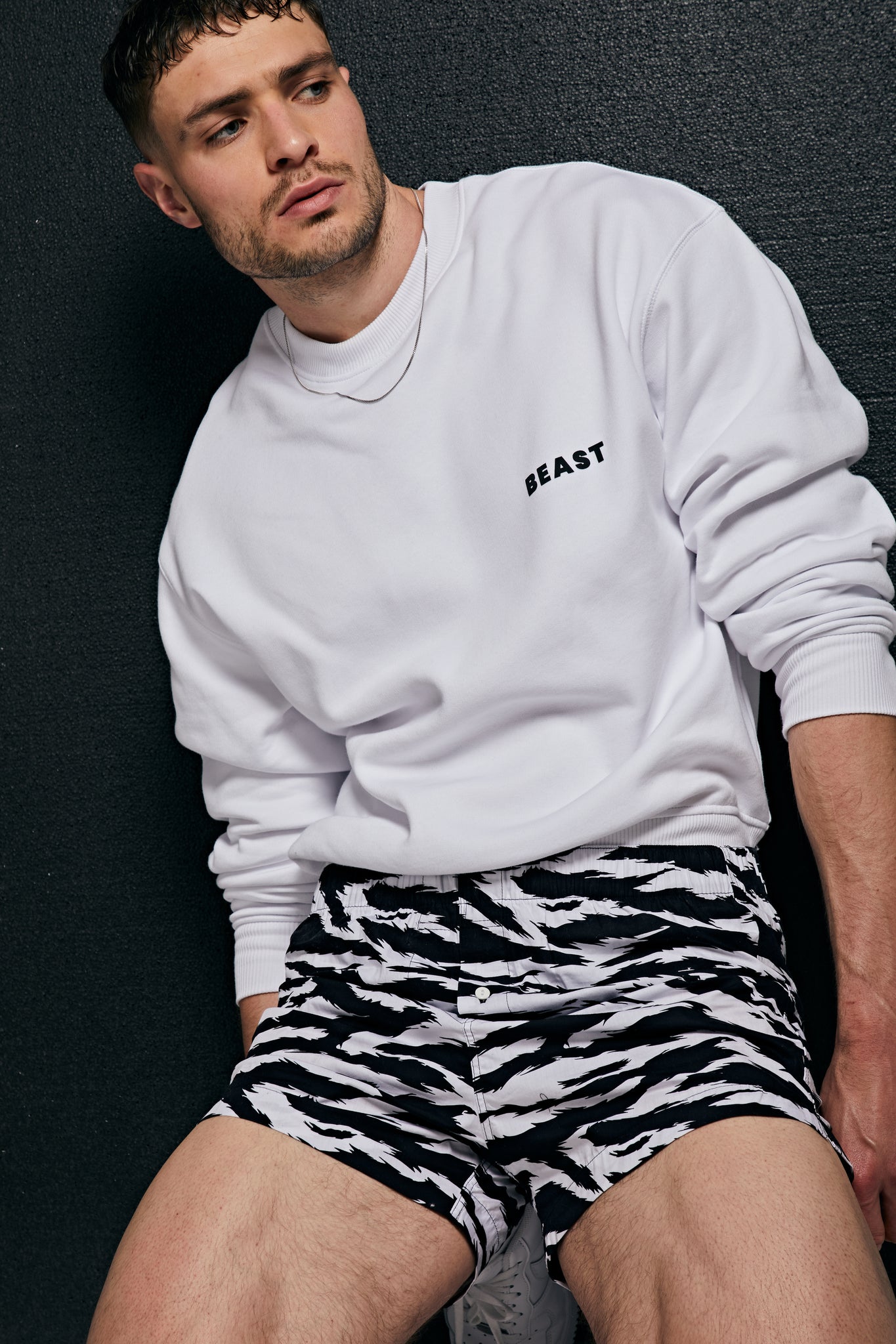 The MR STRIKE BEAST Zebra print boxer shorts are made from organic cotton poplin, with an elasticated waistband and a button closure fly. Side vents at the hem allow for extra movement and the lightweight cotton is breathable and comfortable for day or nightwear