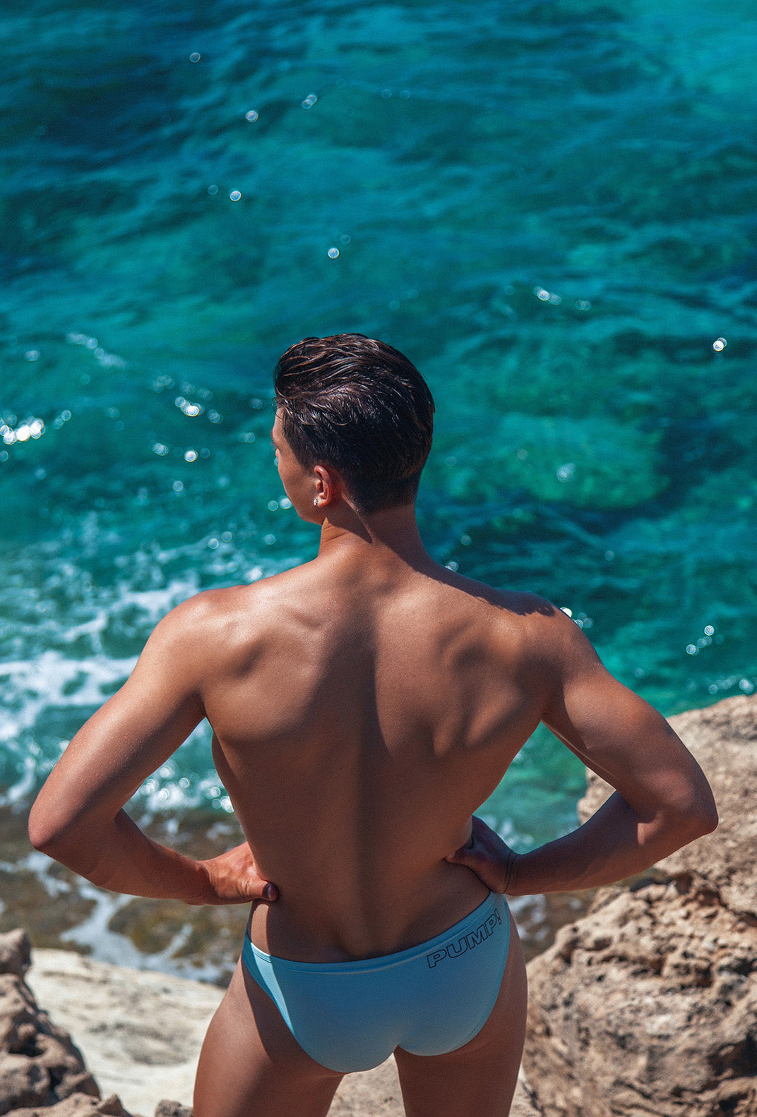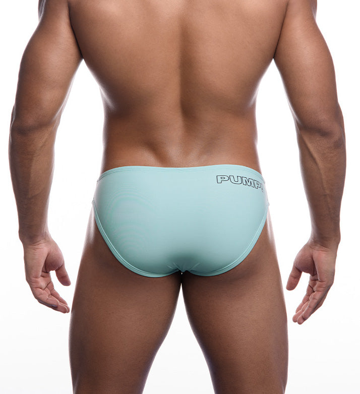 The PUMP! Retro Teal Water Cheekies Swim Brief is new for Summer and features a sports micro cut swim trunk style with a full contoured pouch for that perfect fit. Features a soft elastic waistband and PUMP! branding printed onto the back hip, with UPF 50+ protective fabric, soft microfibre lining and a low cut design.