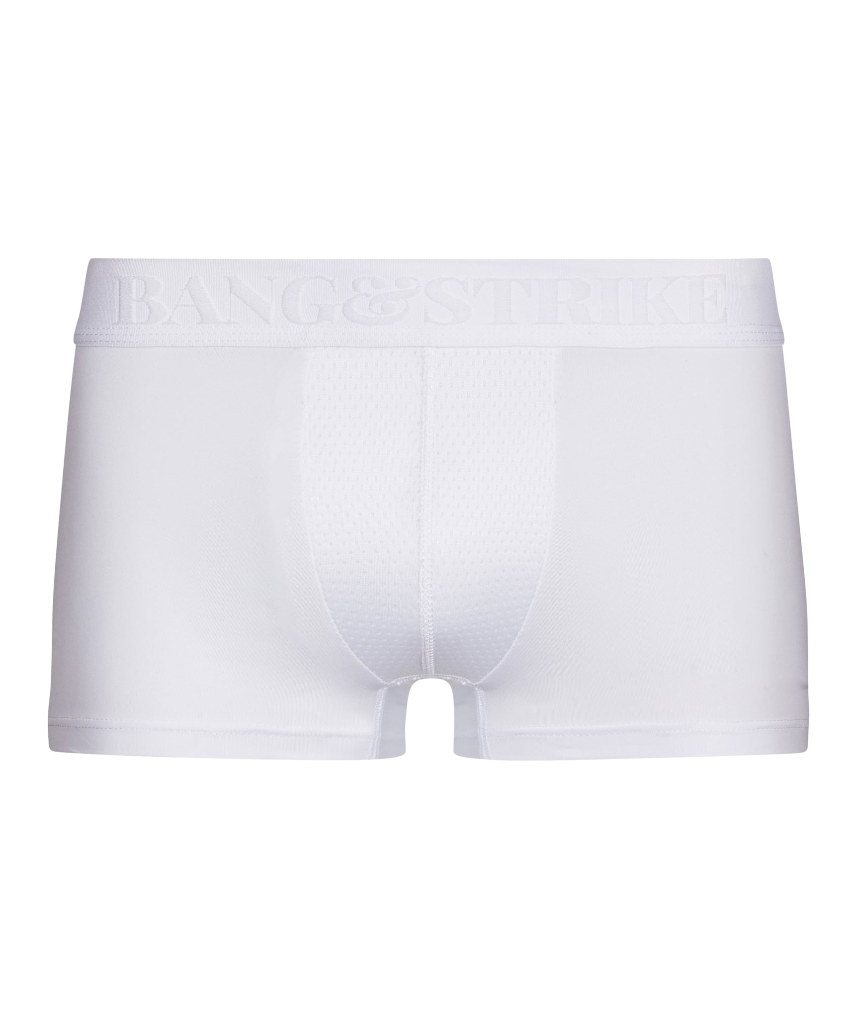 Our STRIKE PRO EMBOSS performance trunk in white has been designed to keep you cool and dry during the heaviest of sessions. With a breathable micro mesh pouch and a quick dry, moisture wicking body.